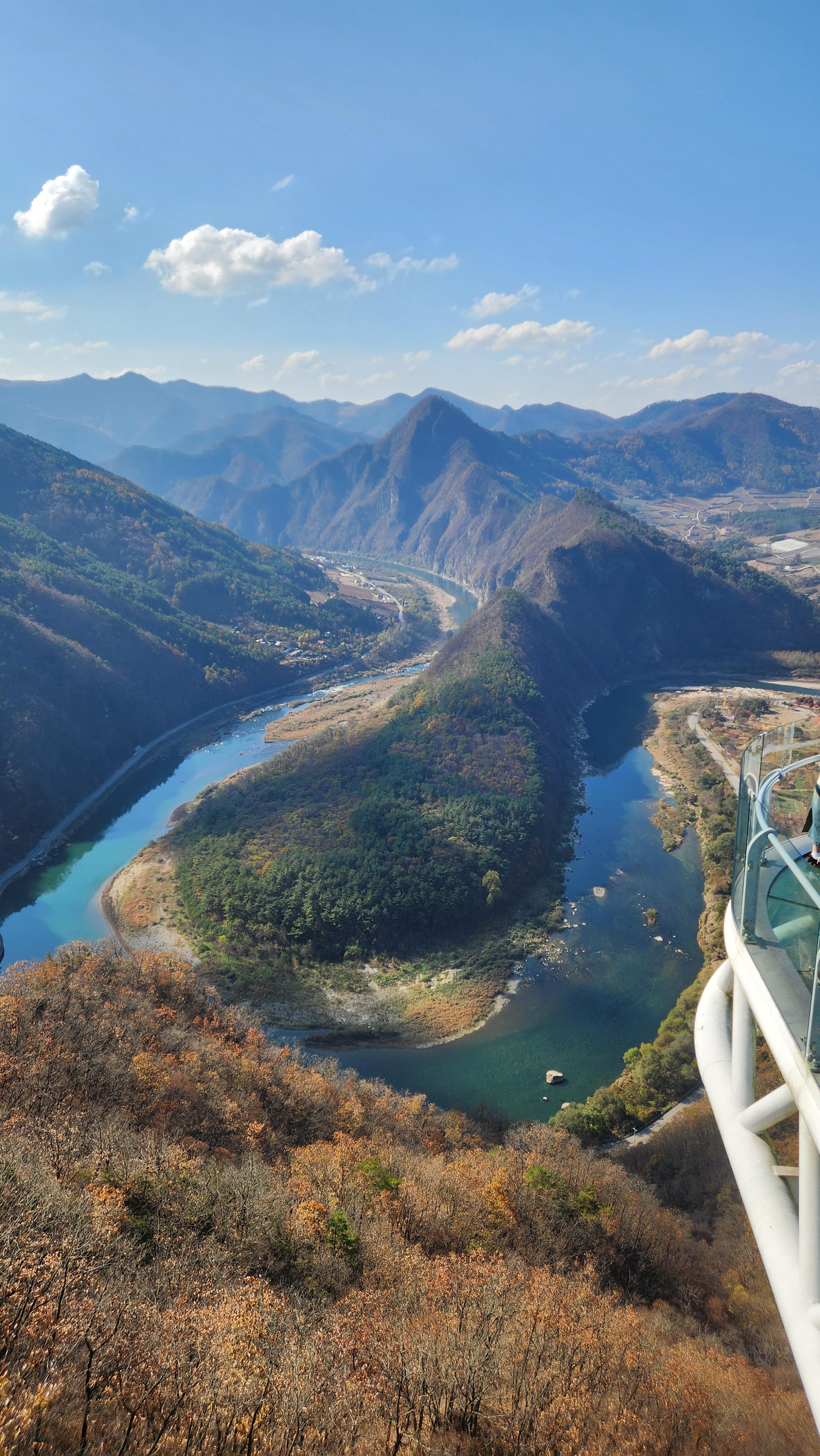 아래는 병방치 스카이워크 전망대의 모습. 울긋불긋한 색감을 기대했는데 조금 아쉽다. 누런색 단풍만 눈에 띈다.