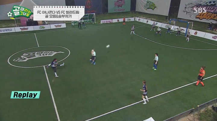 아... 아나콘다의 1승이 정말 이렇게 어려운 건가요? 젊은 발라드림에 비해서 아나운서들의 킥력이 좀 부족하네요. 승부차기에서 계속 골대를 맞추는 상황이 연출되면서 결국 경기는 발라드림으로 넘어갔습니다. 아쉽네요.