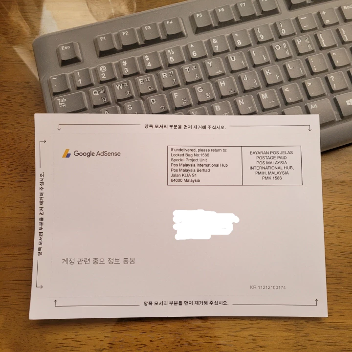 구글 애드센스는 계정 주인이 우편물을 받을 수 있는 정확한 주소를 입력하게 한 후, 그 주소로 서신을 보낸다.