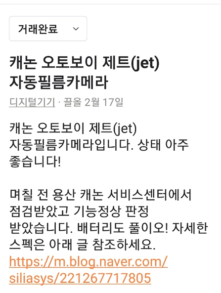 점검 결과서를 받아들었기에 난 더욱 자신있는 가격과 상품설명으로 당근마켓에 올릴 수 있었고 레트로 필름카메라의 유행으로 인해 판매는 금방 팔렸다. 대성공이었다.