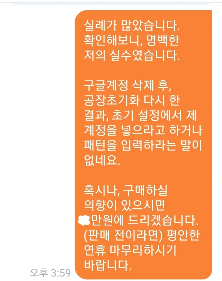 그 이유는... 중고 폰을 판매할 때 공장초기화 뿐만 아니라 구글 계정 삭제를 하고 거래해야 하는데 그러지 않았기 때문이었다.