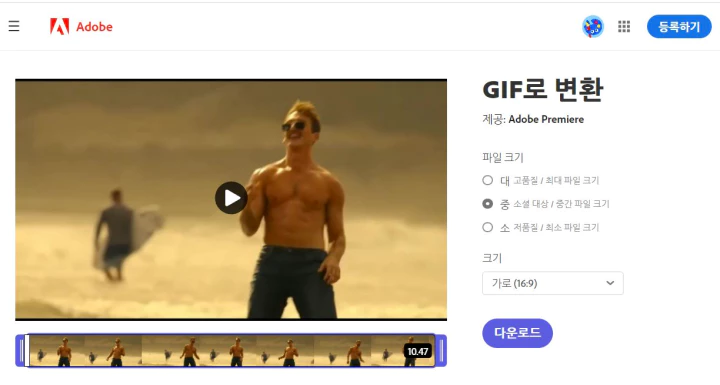 동영상 gif 변환하는 무료 Adobe Express  사용 법. 탑건 매버릭 루스터 오동잎댄스 움짤 만들기