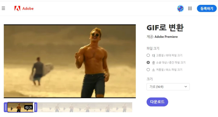 오른쪽 하단의 '다운로드' 버튼을 누르면 로컬 다운로드 폴더로 gif가 다운로드됩니다. 모든 프로세스 완료입니다.
