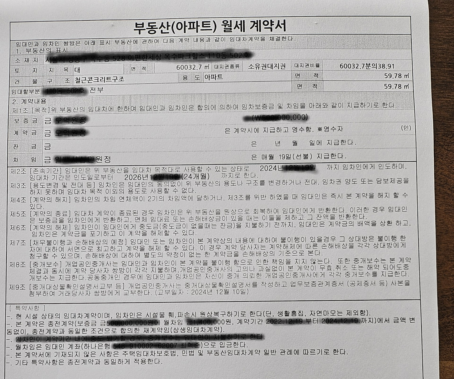2. 본 계약은 기존 계약에서 보증금 5% 증액한 연장계약이다.