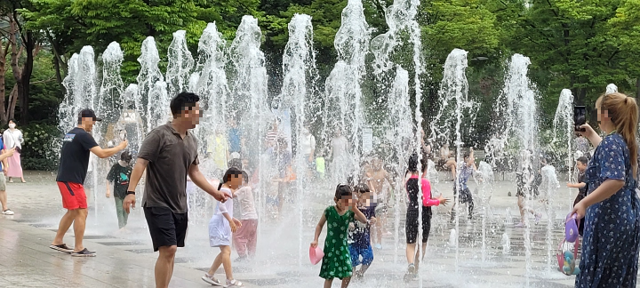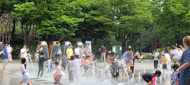 아이들 좋아하는 모습을 보고 부모님들도 덩달아 신이 난 것 같네요. 서울숲의 좋은 공기 속에서 시원하게 놀 수 있으니 여느 비싼 수영장 부럽지 않습니다.
