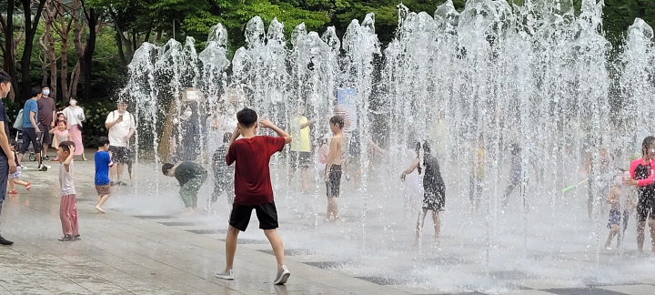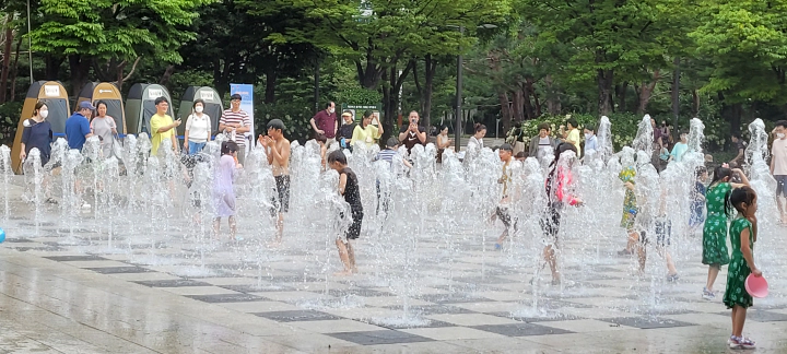 아이들 좋아하는 모습을 보고 부모님들도 덩달아 신이 난 것 같네요. 서울숲의 좋은 공기 속에서 시원하게 놀 수 있으니 여느 비싼 수영장 부럽지 않습니다.