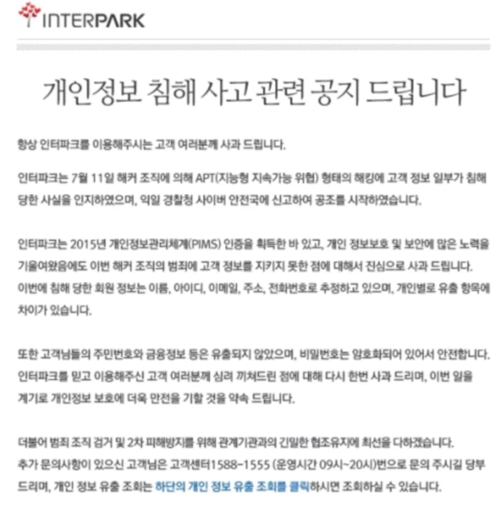 이 사건으로 인터파크는 44억 8천만 원의 과징금과 2,500만 원의 과태료를 부과 받았지요. 이는 국내 기업에 부과되었던 과징금 중 역대 최고의 금액이라고 하네요.