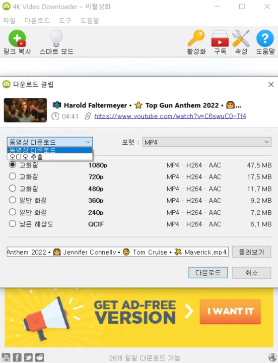 유튜브 동영상 다운로드 프로그램, 4K 비디오 다운로더! 무료이면서도 안전하고 사용하기 매우 쉽습니다.