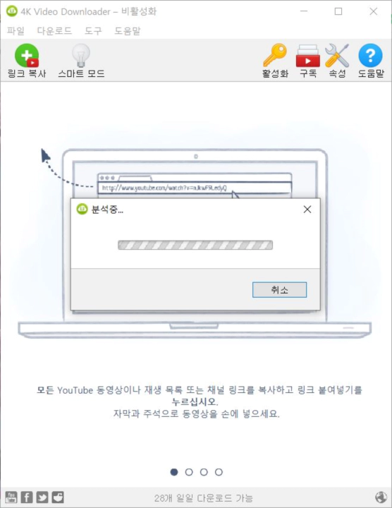 3. 4K 비디오 다운로더가 동영상 URL을 분석합니다. 약 3~4초 정도 걸립니다.