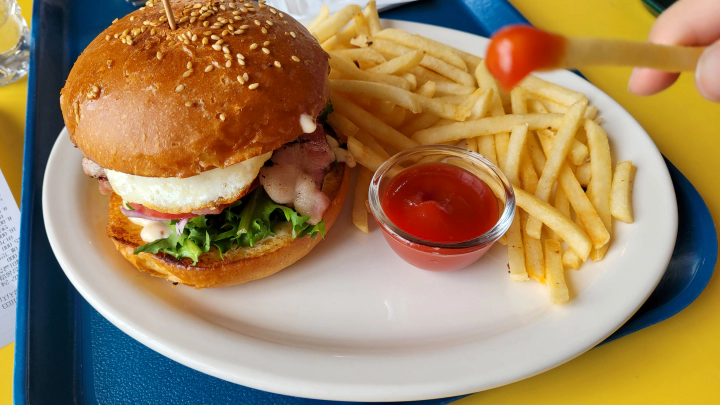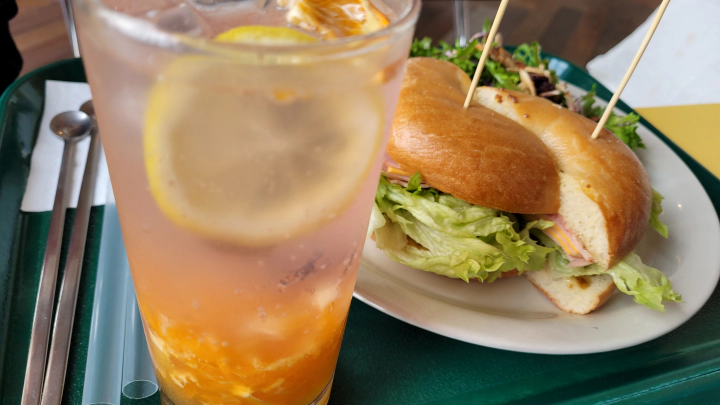 우리는 카페 한켠에 자리 잡고 주문을 했다. 음식은 베이글 샌드위치, 버거 & 칩스, 에그인헬 세가지를... 음료는 시그니처인 텐저린에이드와 베리에이드를 주문했다.