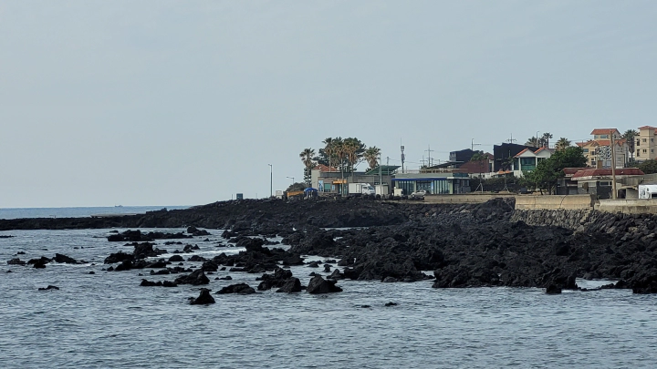 카페 텐저린에서 맛있는 브런치로 배를 채운 후, 우리는 법환포구로 넘어가 제주 바다를 즐겼다. 카페 텐저린에서 차로 5분 정도 가면 법환포구에 도착할 수 있었는데 충분히 멋진 해변이었다.