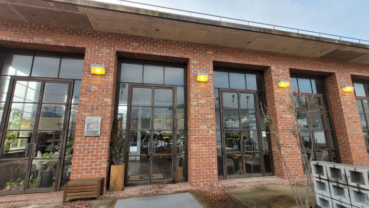 건물 밖에서 바라봤을 때 보통 건물 2층 높이라는 것을 알 수 있다. 붉은색 벽돌을 소재로 지어진 건물이 아주 견고해 보이고 유리창이 무슨 전시장이나 식물원처럼 길게 나 있어서 멋스럽다.