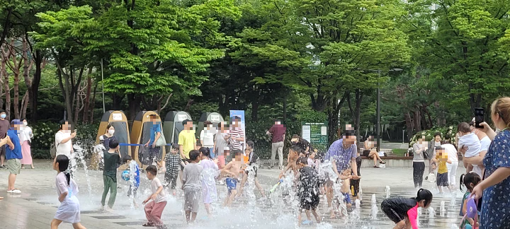 '서울숲 바닥 분수'에 가서 분수를 가로질러 다니며 물총 싸움도 신나게 했습니다. 아이들 정말 좋아라 합니다.