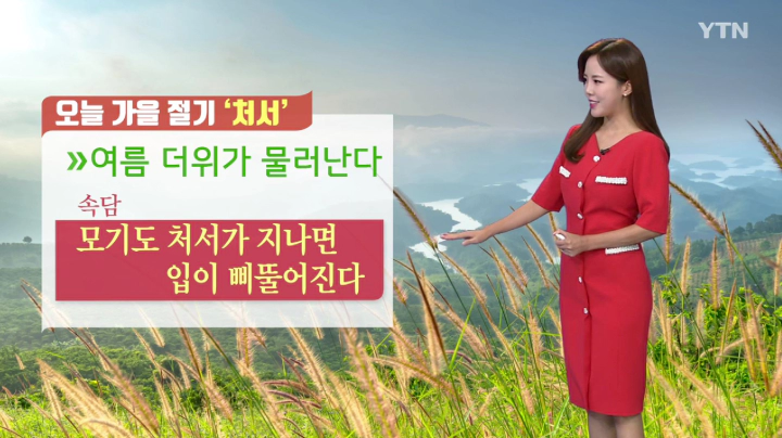 오늘은 절기상 처서(處暑)라고 합니다. 이제 더위가 그치고 가을로 접어드는 것이지요. 우리나라 속담 중에 '처서가 지나면 모기도 입이 비뚤어진다.'라는 말이 있는데요. 처서의 서늘함 때문에 파리, 모기의 극성도 사라진다는 뜻이라고 하네요. 절묘한 표현입니다. ㅋㅋ (출처. 한국민속대백과 사전)