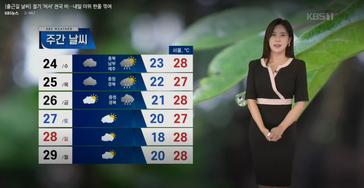 서울, 수도권 지역의 장마는 오늘 아침 비로 거의 끝난 것 같고요. 그 이후로는 특별한 비 예보가 없습니다. 주말에는 전국적으로 구름만 조금 낀다고 하니 8월의 마지막 주말에 야외활동 계획 세우셔도 무난하지 않을까 생각되네요. 단, 수요일과 목요일, 충청도와 경상도 지역에는 비 예보가 있으니 그 지역 사시는 분들은 참고하시기 바랍니다.