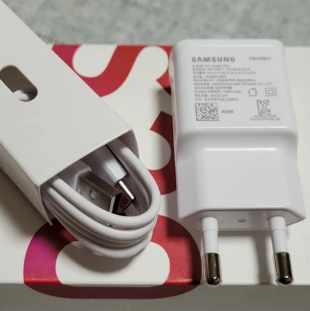 15W 이상의 미사용 삼성 정품 고속충전기와 정품 C타입 케이블이다.