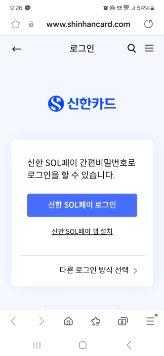 링크를 클릭하면 아래의 신한카드 모바일 페이지가 나타나고...