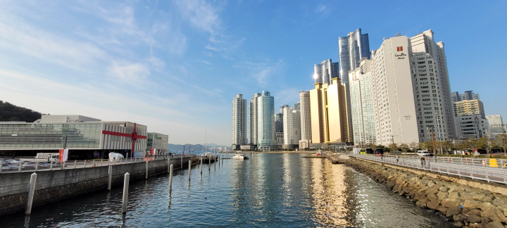 12월 초의 해운대 출장! 4박 5일간의 일정 중 어느 날 아침... 묵고 있던 해운대 신라스테이에서 벡스코 전시장까지 산책할 기회가 있었습니다. 멀리 동백섬, 오륙도가 보이고... 해운대 해변 주위로 솟아있는 고층 빌딩을 지나 바다를 가로지르는 광안대교 밑으로 정박된 요트들이 보입니다. 12월 초 부산은 영상 10도를 오르내리는 포근한 날씨였는데요. 마치 샌프란시스코에 놀러와서 산책하는 기분입니다. 화창한 해운대 날씨의 아침 산책! 정말 좋았습니다. 다시 가고 싶네요.