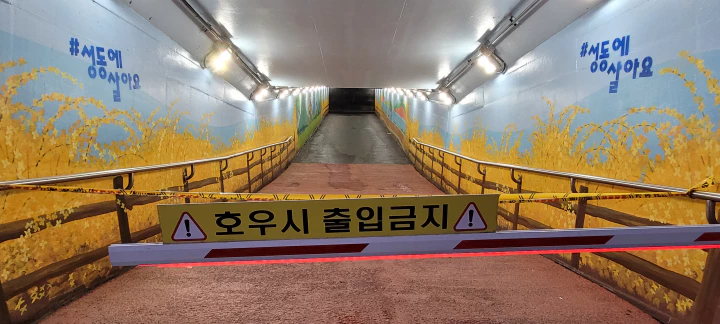 한강공원으로 나가는 출입구는 여전히 봉쇄되어 있었습니다. 언제 열릴지 모르겠네요. 제 예상에는 주말이나 되어야 다시 열리지 않을까 예상됩니다.
