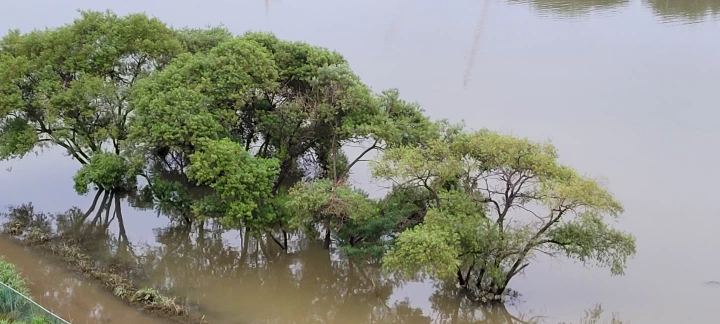어제 봤던 애처로운 나무들이네요. 잠긴 높이가 어제(9일)와 비슷합니다.