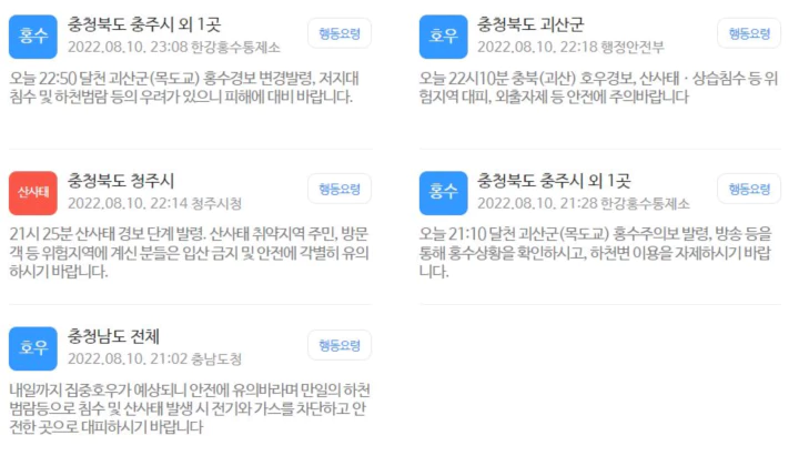 | (9일)서울경기 집중호우로 한강 중랑천 수위 범람 위험. 침수 피해 조심! (0) | 2022.08.10 |