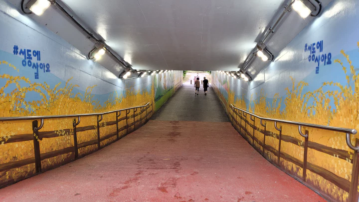 다행히 며칠 동안 소강 상태였던지라 오늘(13일) 저녁 6시쯤 중랑천에 나가보니 한강시민공원은 개방되었고 수위도 많이 줄었더군요. 공원 출입구를 막고 있었던 차단봉이 오늘은 올라가 있네요. 시민들이 한강공원으로 걸어 들어가는 모습이 보입니다.