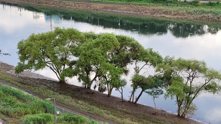 공원 초입에 보이는 아래 사진의 저 나무들! 강 둔턱에 자리잡고 있는 저 나무들이 바로 중랑천 수위가 얼마나 내려갔는지 보여주는 바로 미터입니다. 오늘은 나무의 밑둥까지 보이네요. 이게 정상입니다.