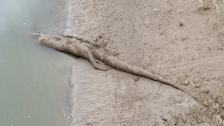 응봉교 위에서 문득 아래를 내려다 봤는데... 이상한 괴생물체 같이 생긴 것이 강가에 누워 있었습니다. 처음 봤을 때는 정말 깜짝 놀랐었지요. 봉준호 감독의 영화에 나오는 '괴물'의 꼬리같은 것이 보이더라구요.