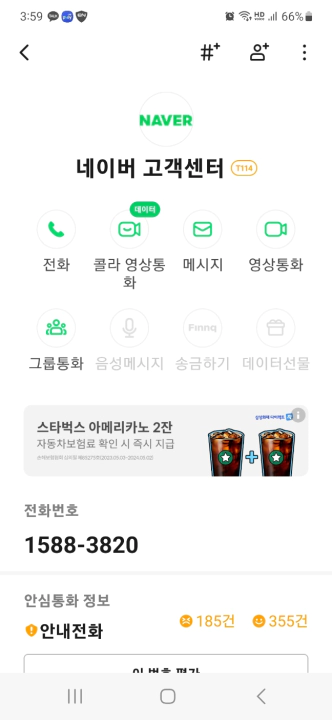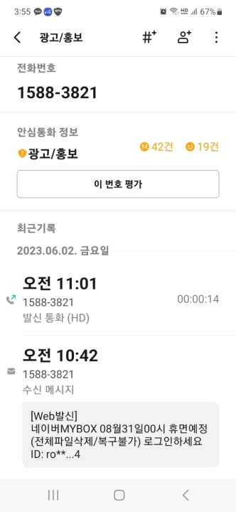 그렇다면 이 메시지는 네이버 고객센터, 마이박스에서 보낸 것이 맞고... 1588 3821는 피싱이나 스미싱 번호가 아닌 네이버 고객센터가 사용하는 전화번호가 맞는 것! 여기저기 알아보니 공식 네이버 고객센터 전화번호는 1588 3820으로... 1588 3821는 네이버 고객센터가 사용하는 서브 번호인 듯하다.