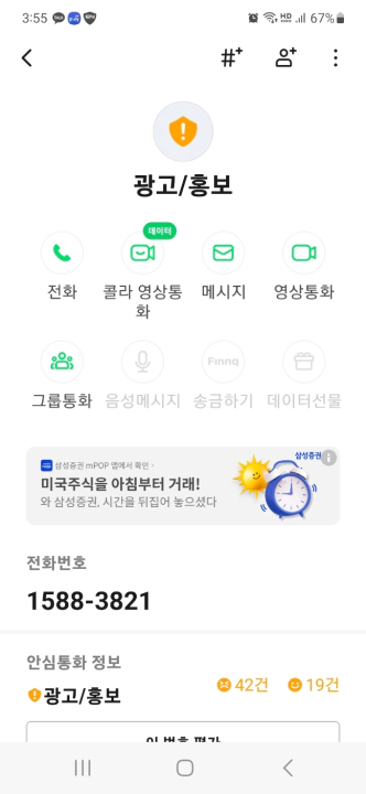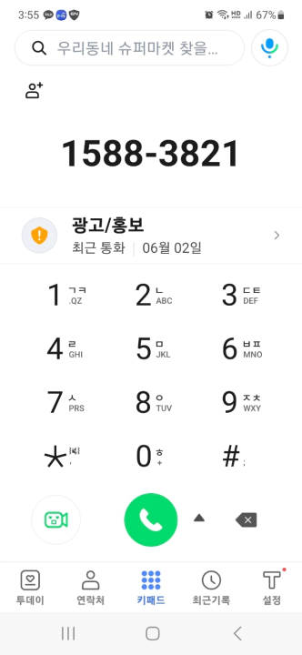 어떻게 된 것이지...? 1588 3821는 정말 피싱이나 스미싱 전화번호인가. T전화도 1588 9821번에 대해서 특별히 정보가 없는 모양이다. 단지 "광고/홍보"라고 명기할 뿐.