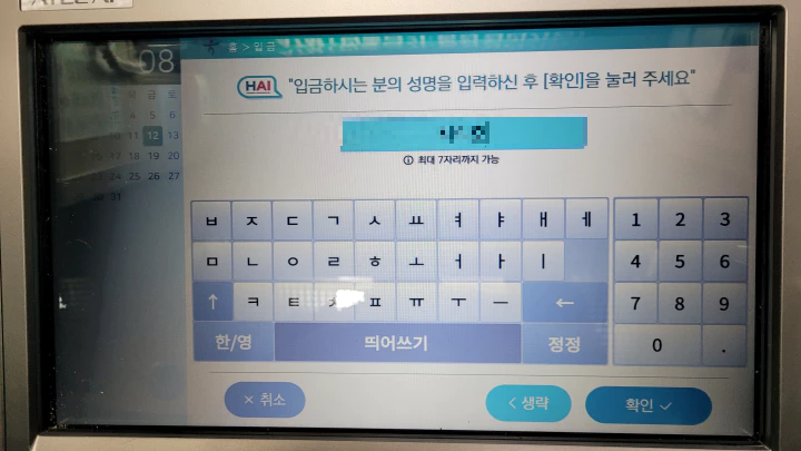 이제 다 왔습니다. 마지막으로 입금자의 이름을 입력하면...