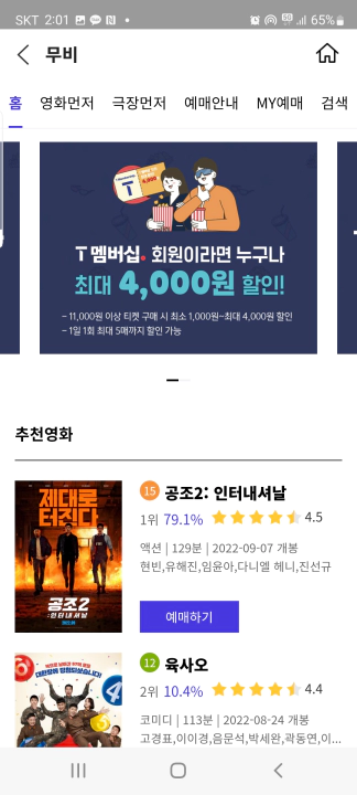 T멤버십 VIP 영화 예매하는 방법은 간단합니다.